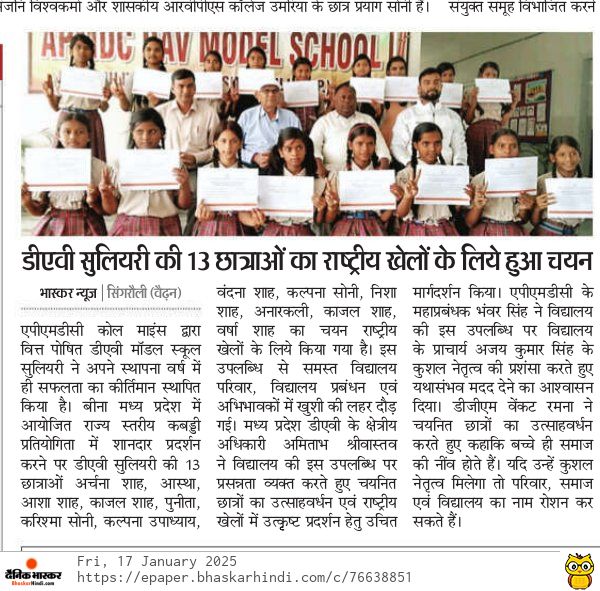 APMDC DAV MODEL SCHOOL SULIYARI, established in the year 2024, where academic excellence meets holistic development! Established with a vision to create a nurturing and inspiring environment, School APMDC DAV is committed to empowering students with the knowledge, skills,